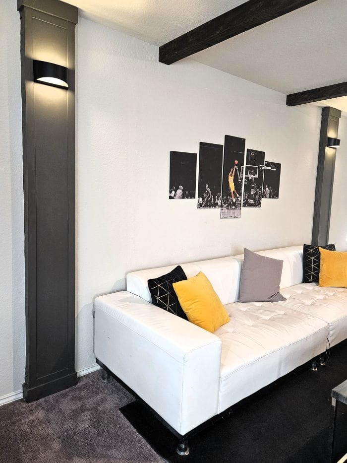 In this first installment of our Sporty Game Room Transformation Series, we’re turning plain walls into dramatic theater-style columns that echo stadium vibes. Inspired by the thrill of basketball, boxing, and track, this makeover sets the stage for an energizing game room where every glance inspires action.
