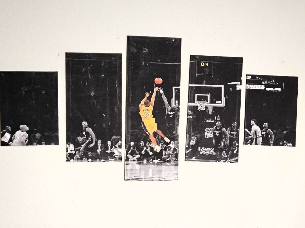 Add bold, themed artwork featuring your favorite sports heroes or teams. We choose in particular pictures which are matching our color theme.