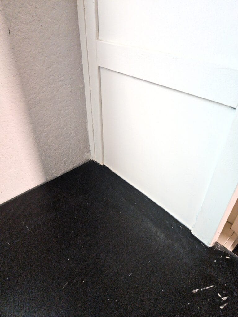 This step is what truly transformed the piece. To eliminate the “IKEA furniture” look, Installed trim along the top and bottom of the cabinet and closed gaps between the cabinet and the wall using finger-joint trim and caulk. I also shortened the cabinet feet so the unit appears to sit directly on the floor. This small change made a huge difference, instantly shifting the look from freestanding furniture to a true built-in. Additionally, I replaced the basic IKEA drawer knobs with some more luxurious black-bronze handles.