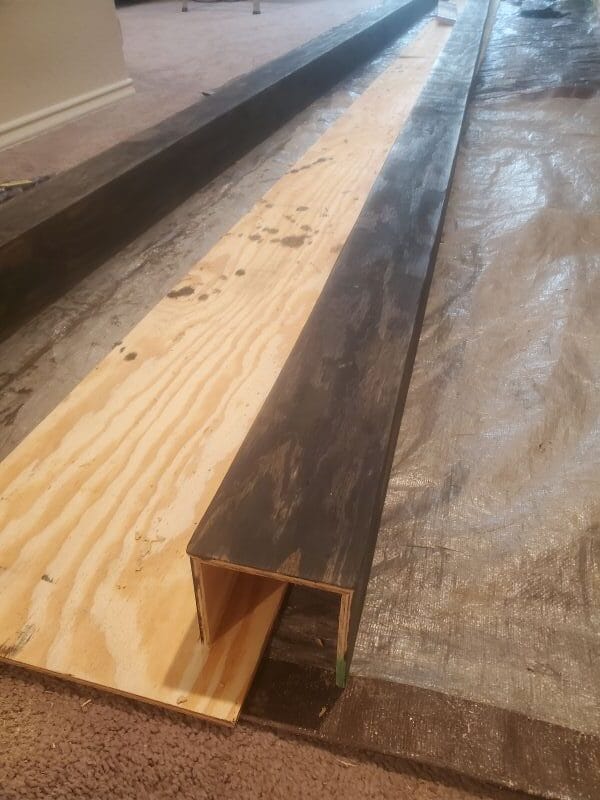 Once assembly was complete, I stained the beams using my favorite Varathane Ebony and Dark Walnut stains. The combination added depth and warmth while helping disguise the plywood layers even more.