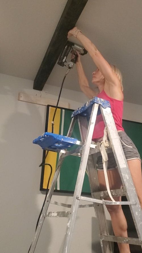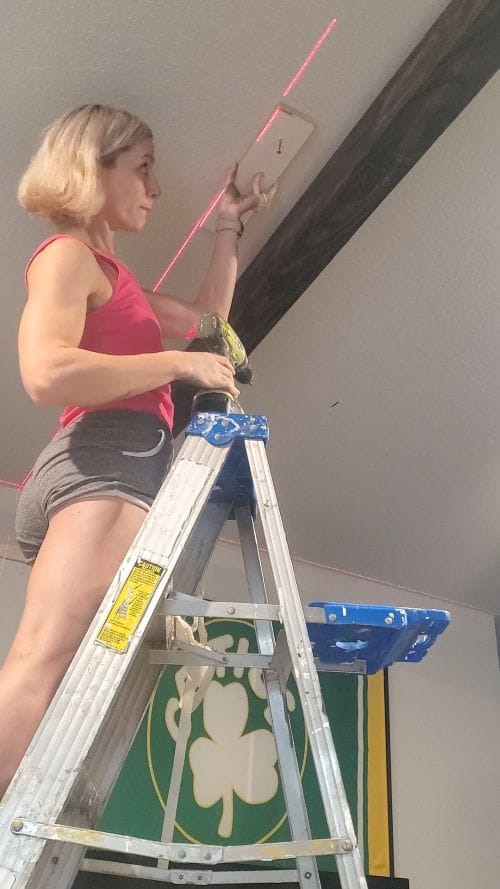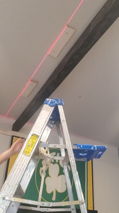 I had a rough idea of where I wanted the beams to go, but alignment was key. Since faux beams still need real support, I had to make sure they lined up with the actual ceiling beams (studs), which ran in the same direction.