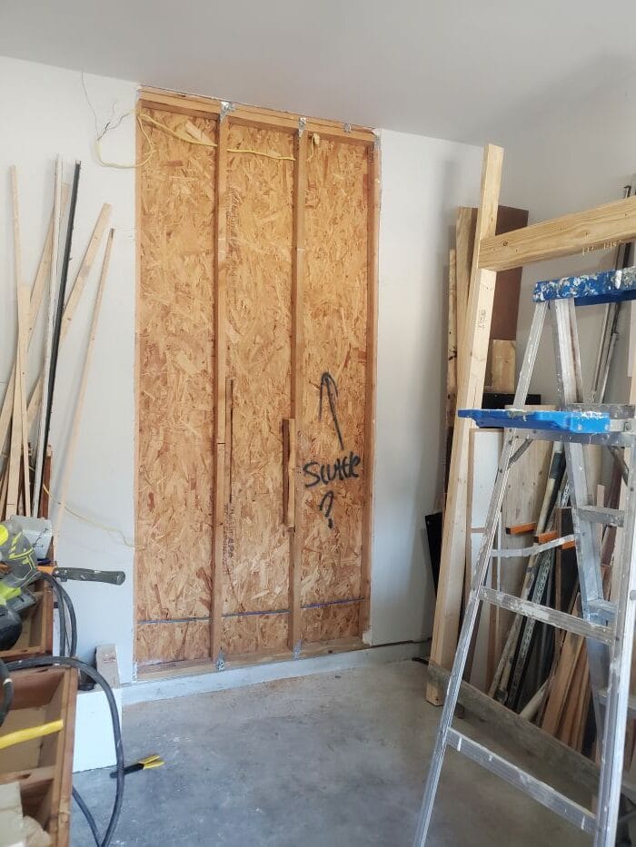 - Determined that two studs would need to be removed to fit the door properly