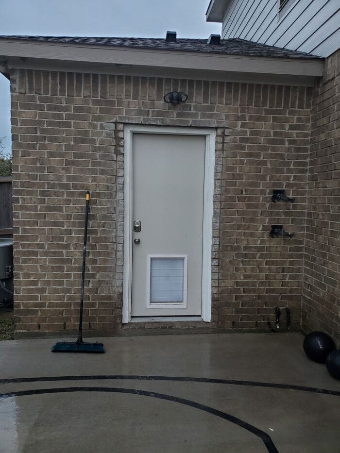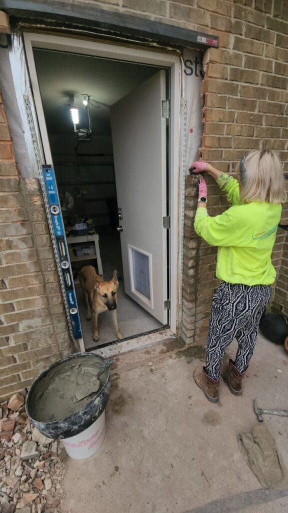 DIY Exterior Door Installation: From solid brick wall to a functional backyard entry with built-in dog access.