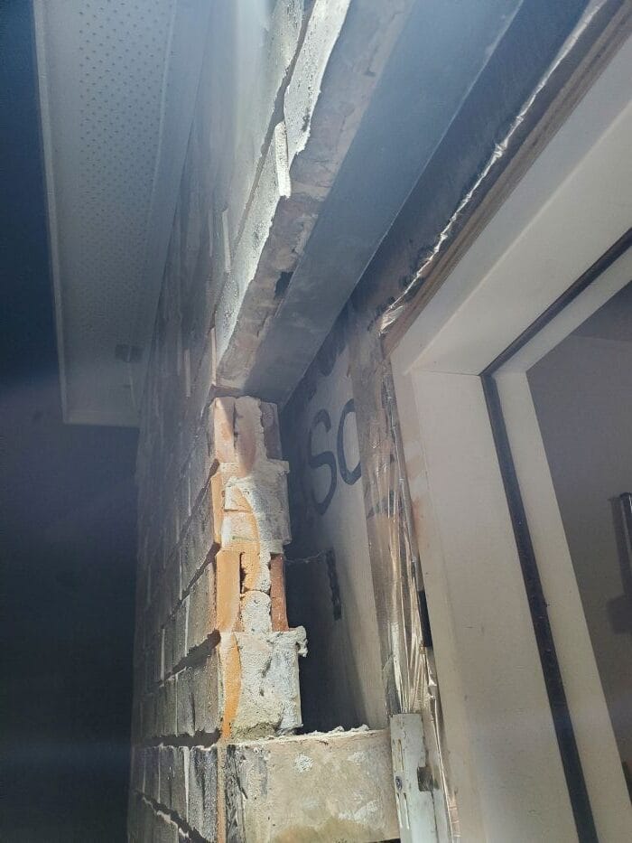 - Installed a steel lintel beam beneath the remaining top row of bricks
